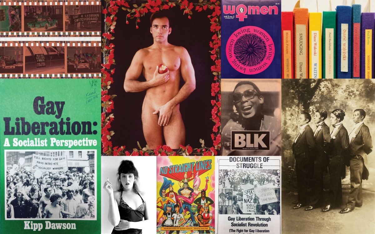 Cover image collage: (clockwise from top left) Baltimore Sun negatives; Jose Villarrubia, Adam. Photograph © 1991 José Villarrubia, Model: Cesar Tirado; Women: a Journal of Liberation vol 5 no. 2 (1977); rainbow colored book spines; Photographer unknown, Four women in tuxedos, ca. 1930s; BLK magazine; Documents of Struggle; No Straight Lines; Amos Badertscher, A 70’s Fairy Tale, 1979. Courtesy of the Artist. © Amos Badertscher; Kipp Dawson, Gay Liberation: A Socialist Perspective